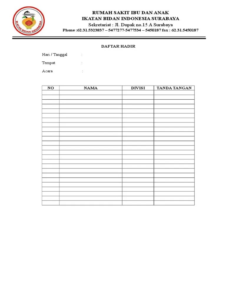 Contoh Form Daftar Hadir Rapat yang sering digunakan Perusahaan Update Informasi