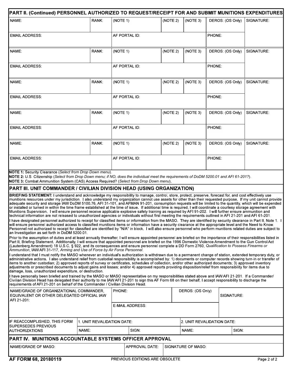 AF Form 68 Fill Out, Sign Online and Download Fillable PDF Templateroller