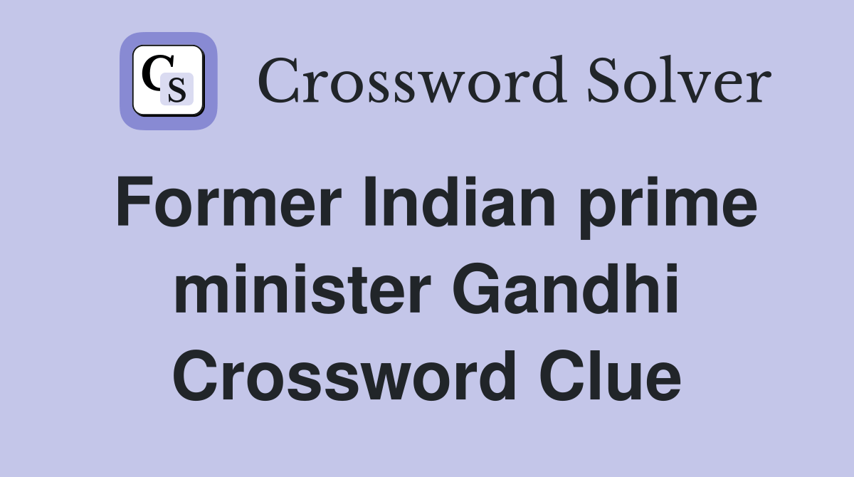 Former Indian prime minister Gandhi Crossword Clue Answers Crossword Solver
