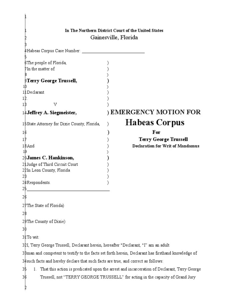 Habeas Corpus in the U S District Court Gainsville Habeas Corpus Prison