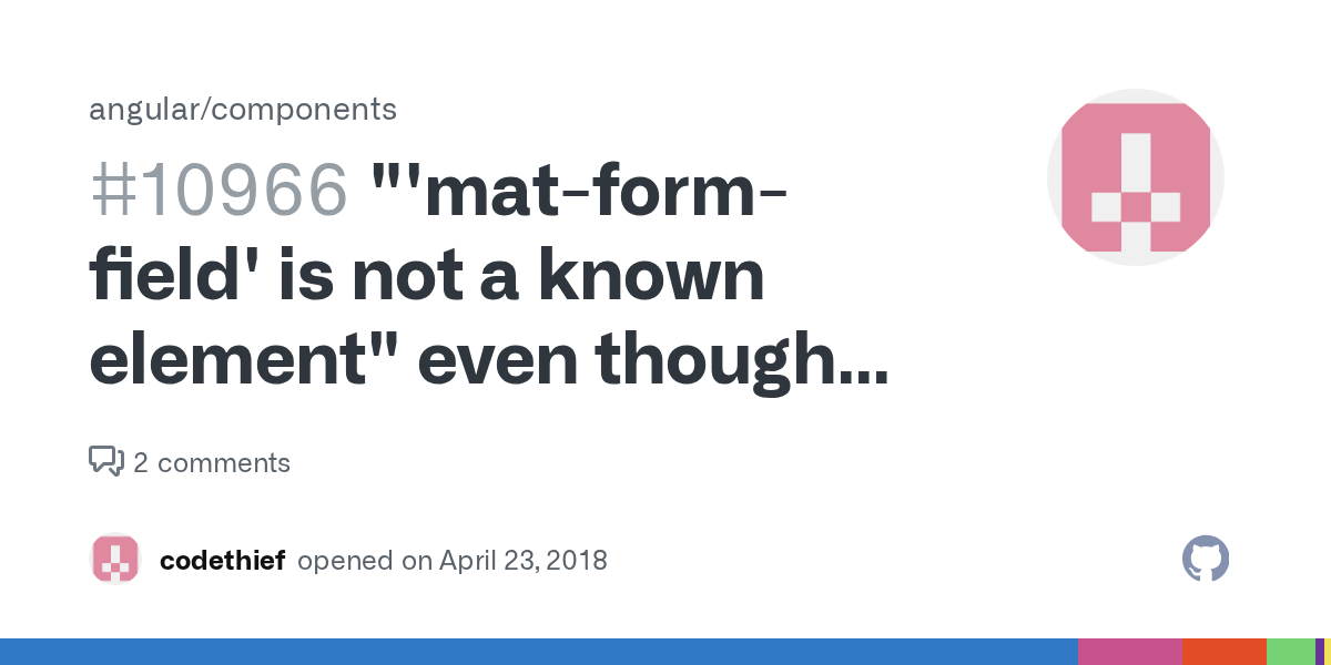 'Mat-Form-Field' Is Not A Known Element - I'm seeing the following error message in the browser console: What is the current behavior? This means that you can use it to create.