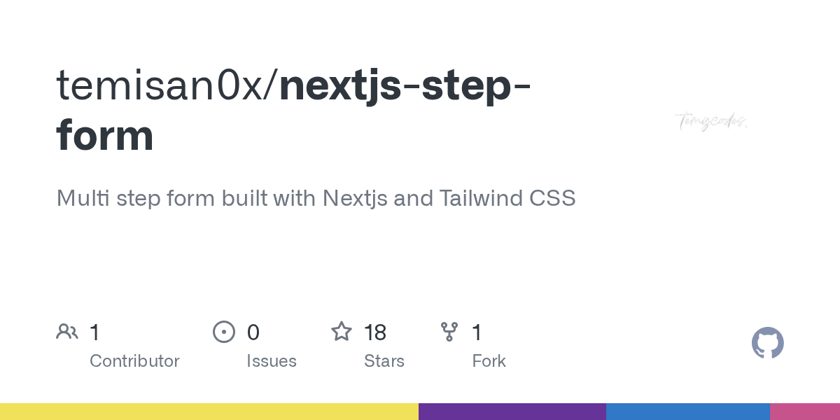 GitHub temycodes/nextjsstepform Multi step form built with Nextjs and Tailwind CSS