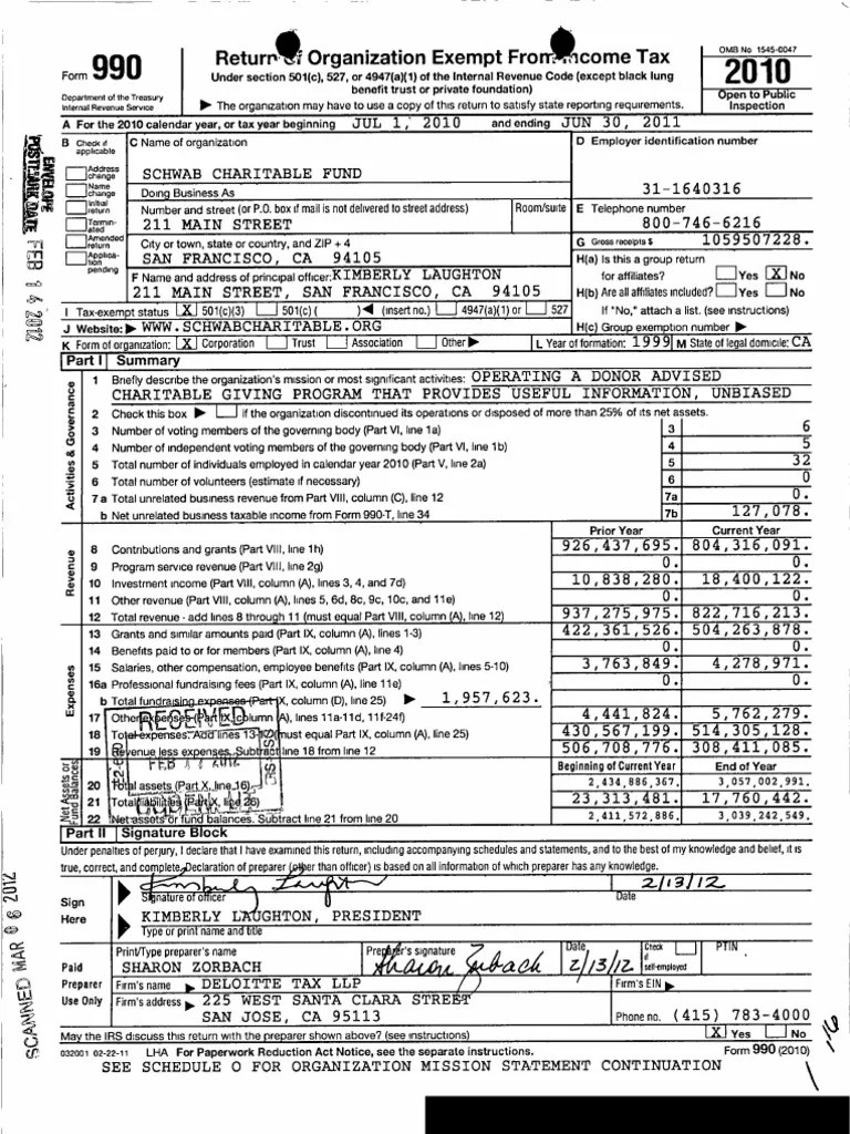 Schwab Charitable Fund 2010 990 PDF Irs Tax Forms 501(C) Organization