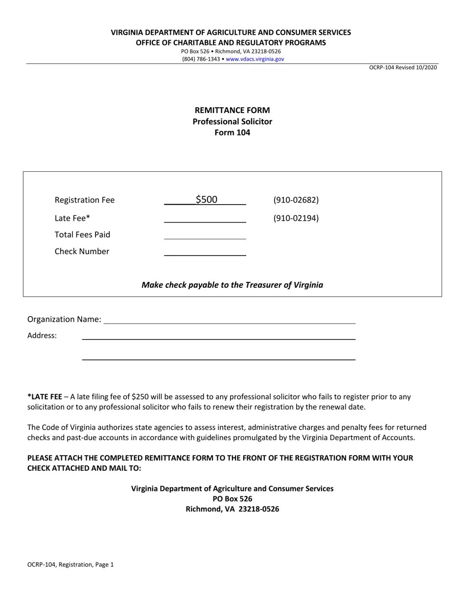 Form OCRP104 Download Fillable PDF or Fill Online Professional Solicitor Registration, Virginia