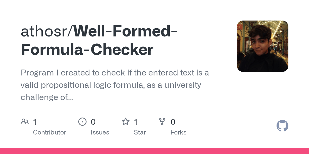 GitHub athosr/WellFormedFormulaChecker Program I created to check if the entered text is a
